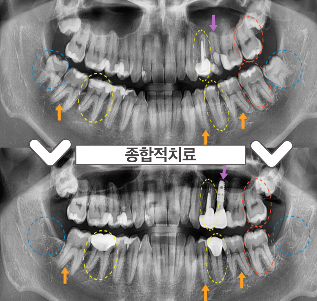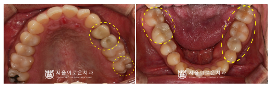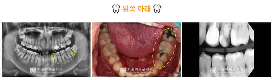 ✔ 왼쪽 아래 첫 번째 작은 어금니(#34), 큰 어금니(#36),