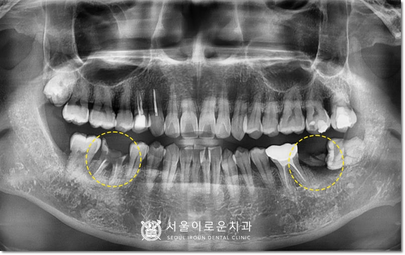 이외에 왼쪽 위아래 사랑니(#28,38)에도