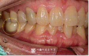 왼쪽 위 큰어금니와 앞에 있던 치아는