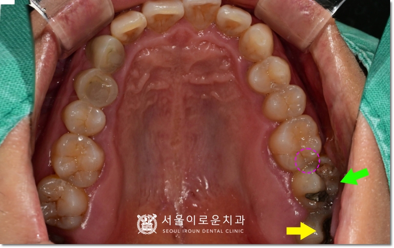 특히, 왼쪽 위 두번째 큰 어금니(#27)는