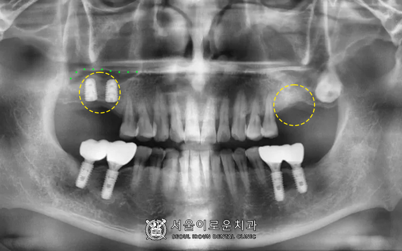 왼쪽 위 역시 뼈이식이 잘되었는데요.