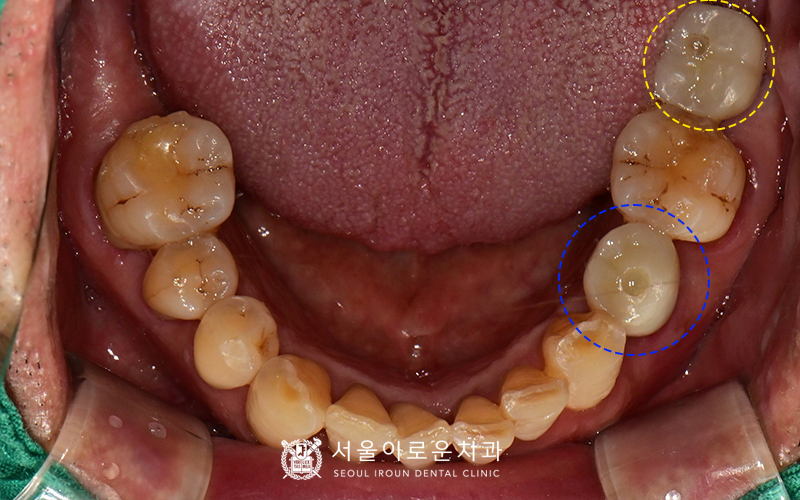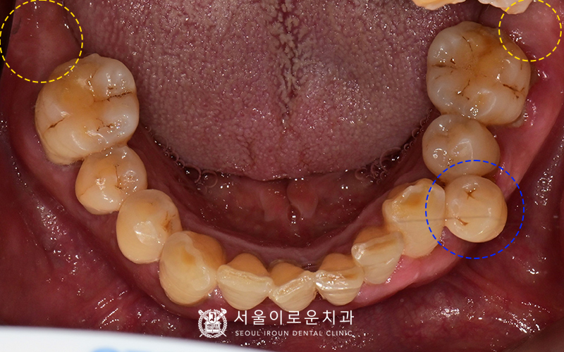 또한, 아래 양쪽 큰 어금니가 1개씩 상실된 상태였습니다.