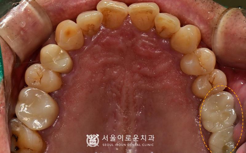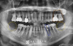 왼쪽 위에 큰 어금니를 보시면 과거 타원에서 신경치료를 했으나