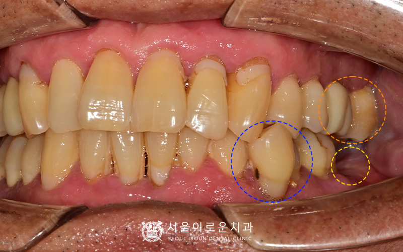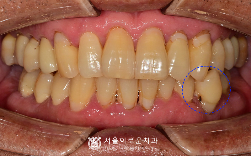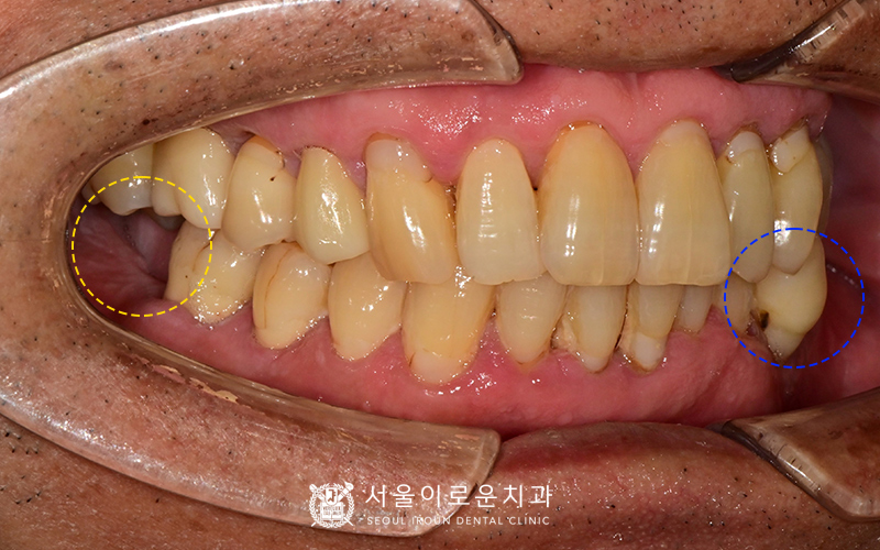 또한, 아래 양쪽 큰 어금니가 1개씩 상실된 상태였습니다.