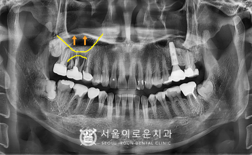 상악동도 많이 내려와 있는 상황이었는데요.